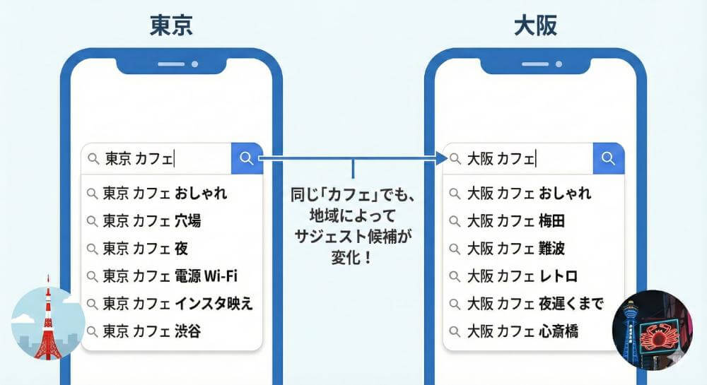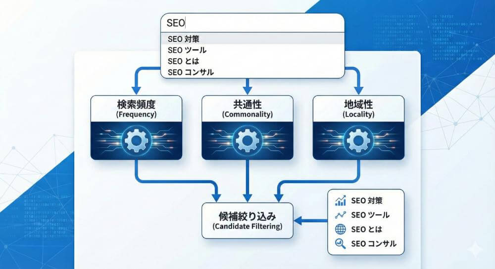 - サジェストは検索頻度・共通性・地域性に基づいて生成される。