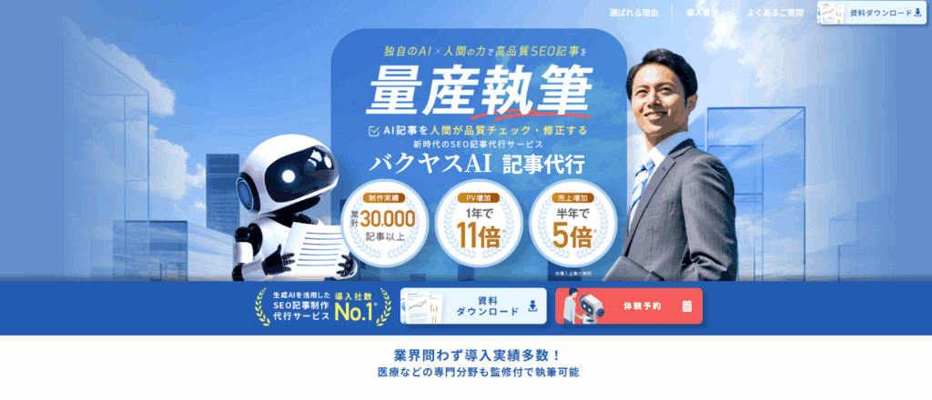 5. バクヤスAI記事代行:AIと人のハイブリッドで低価格・短納期を実現