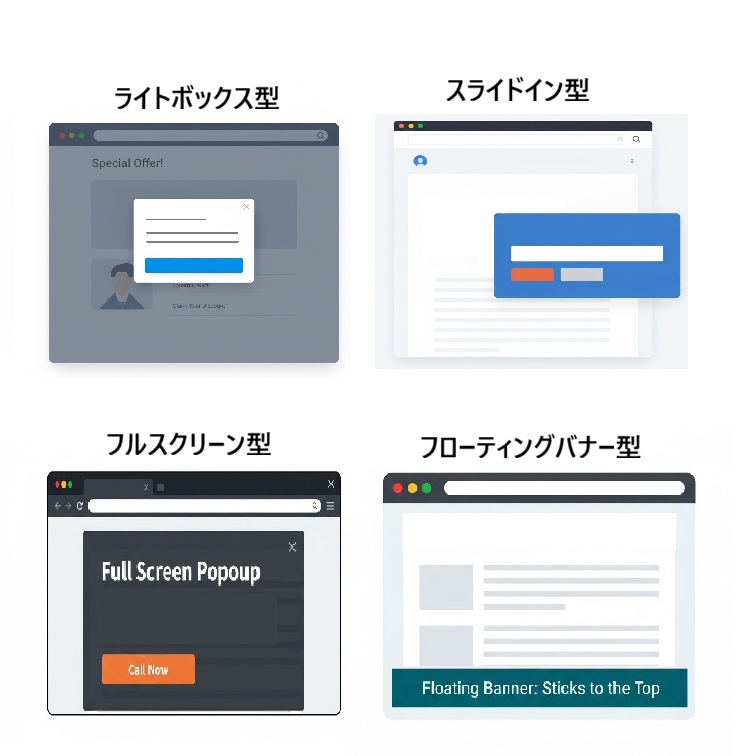 ポップアップの4つの主要な種類とそれぞれの用途